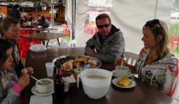 Enjoying Colombian tipico with friends, outside of Bogota